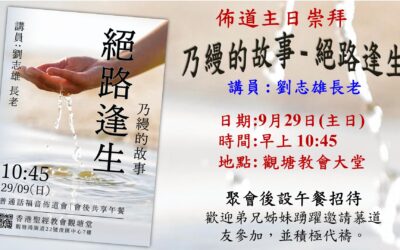 節目重溫鏈接 : https://sermon.hkmbc.org/ktc/20240929KTC講道(乃縵的故事 – 絕路逢生)劉志雄長老.mp4