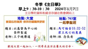 成人主日學:一起學聖經】  地點: 703室