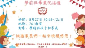 9月3日開始的秋季成人主日學:1.「情緒轉化與更新」2. 一起學聖經 (早上9:30-10:30),歡迎弟兄姊妹踴躍參加!