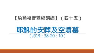 題目:【約翰福音釋經講道之(45)耶穌的安葬及空墳墓