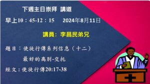 主日講道 (線上直播),時間 11:15