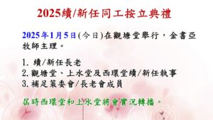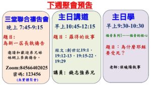 主內平安!  觀塘堂本周日主日崇拜的安排如下: