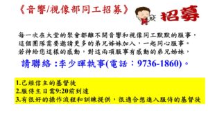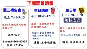 主內平安!  觀塘堂本周日主日崇拜的安排如下: