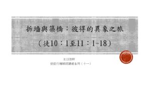 11:1-4,15-18 1 使徒和在猶太的眾弟兄聽說外邦人也領受了神的道。 2 及至彼得上了耶路撒冷,那些奉割禮的門徒和他爭辯說: 3 「你進入未受割禮之人的家,和他們一同吃飯了。」4 彼得就開口把這事挨次給他們講解,說:15 「我一開講,聖靈便降在他們身上,正像當初降在我們身上一樣。 16 我就想起主的話說:『約翰是用水施洗,但你們要受聖靈的洗。』 17 神既然給他們恩賜,像在我們信主耶穌基督的時候給了我們一樣,我是誰,能攔阻神呢?」18 眾人聽見這話,就不言語了,只歸榮耀與神,說:「這樣看來,神也賜恩給外邦人,叫他們悔改得生命了。」