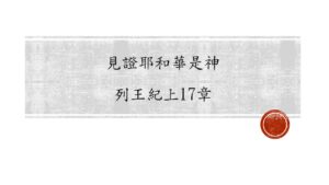 經文 :  (列王紀上17:1-4,8-9,17-18,23-24)